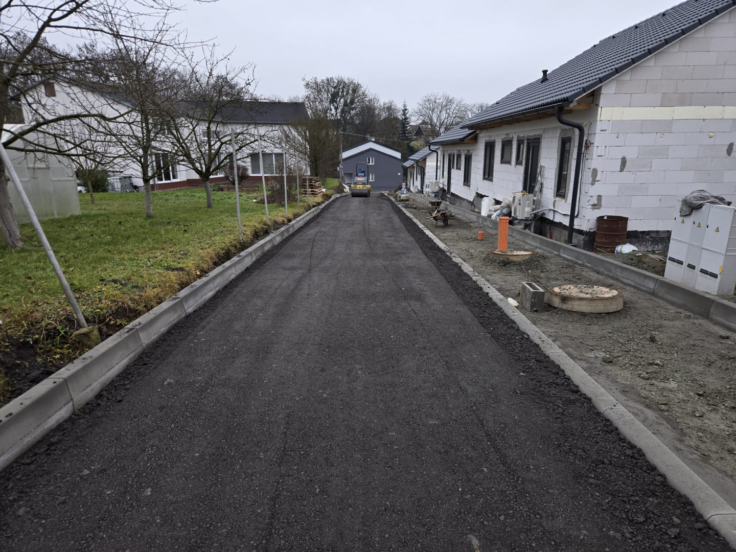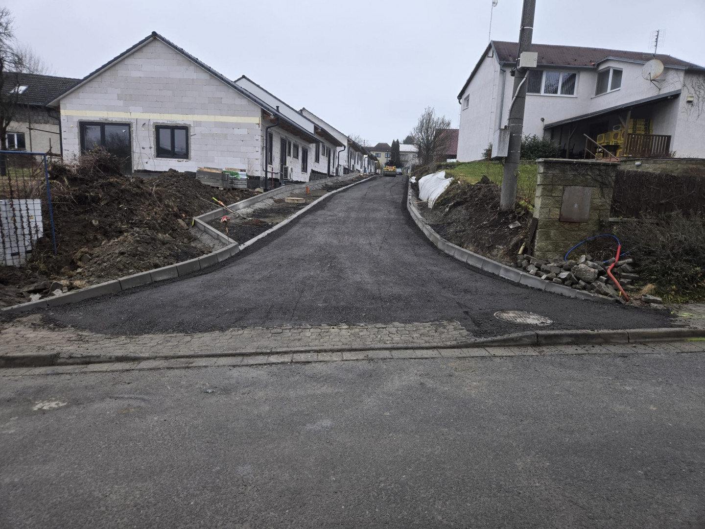 Byly dokončeny práce na výstavbě komunikace, inženýrských sítí k výstavbě rodinných domů a zahájena stavba samostatných domů.